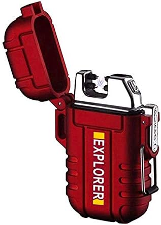 Waterproof Lighter,Outdoor Windproof Flameless Plasma Lighter USB Rechargeable Electric Lighter for Camping,Survival,Tactical(Red)